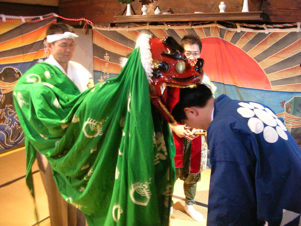 一つ目の演目は「獅子舞 ししまい」。場を清め悪魔を払う舞で始まります。